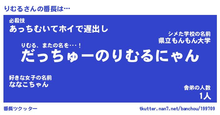 | 意味不明あだ名 | 『ペロリンりむる』『りむるフォーエバー』 |