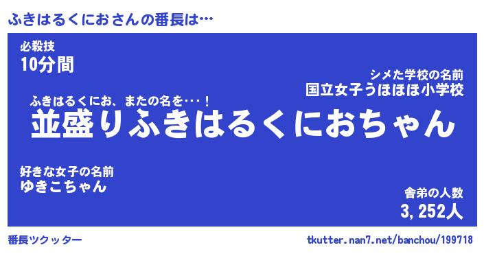 | 男性向けラノベタイトル風あだ名 | 『ふきはるくにおの憂鬱』 |