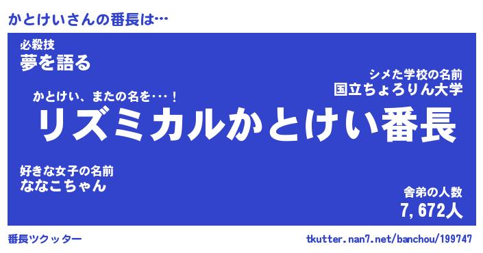 | 意味不明あだ名 | 『ペロリンかとけい』『永久保存かとけい』 |