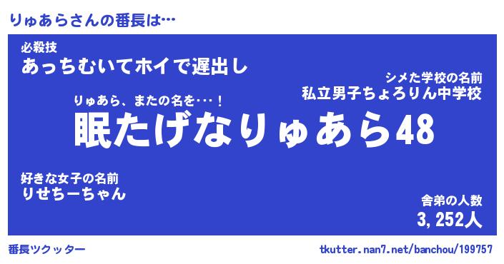 意味不明あだ名 | 『ペロリンりゅあら』『永久保存りゅあら』 |