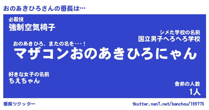 | 意味不明あだ名 | 『ペロリンおのあきひろ』 |