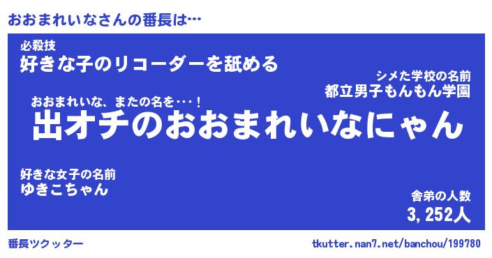 | 2回繰り返すあだ名 | 『おおおお』『おおおお』『ぬめぬめ』 |