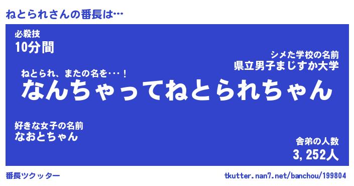 | ヘコむあだ名 | 『ねともー』『なまこ酢』『ねとを』 |