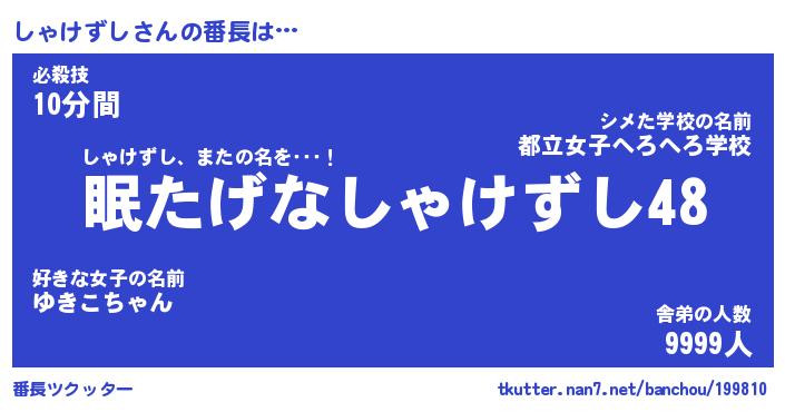 | 肩書あだ名 | 『しゃけずし社長』『しゃけずし総理大臣』 |