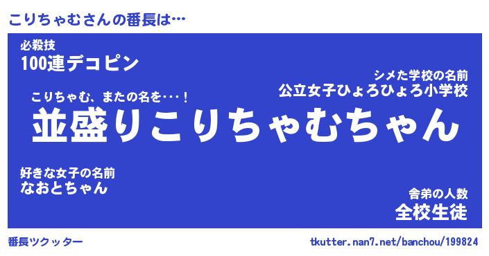 | ピコ太郎風あだ名 | 『ココ二郎』『ピコ十郎』『コリ四郎』 |