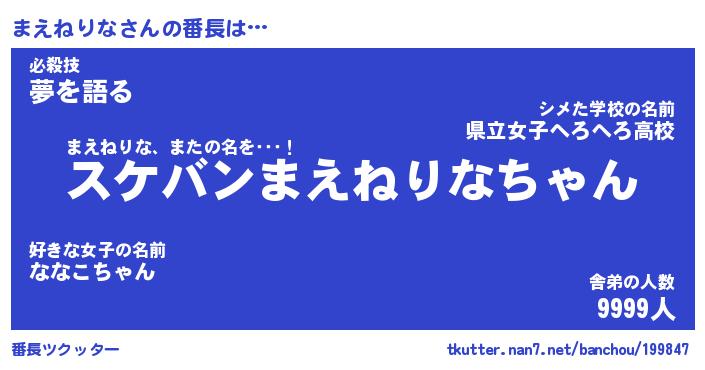 | 肩書あだ名 | 『まえねりな店長』『まえねりな国家主席』 |