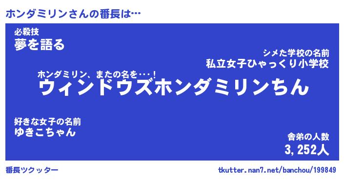 | ポケモン風あだ名 | 『ホンチュウ』『ホンダダネ』 |
