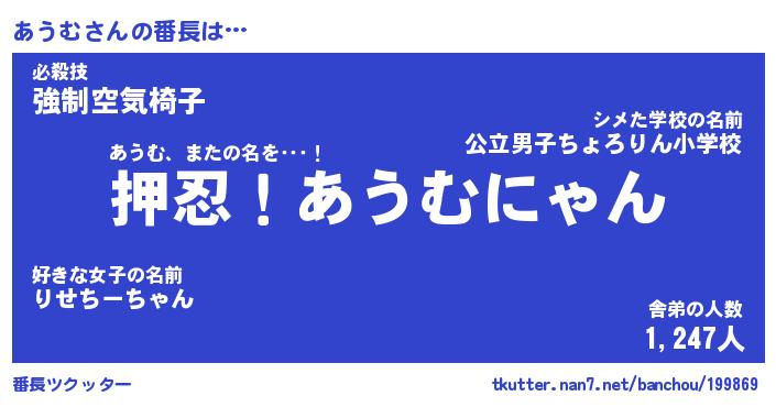 | ヒーロー風カッコイイあだ名 | 『スーパーアウム』『ウルトラあうむマン』 |