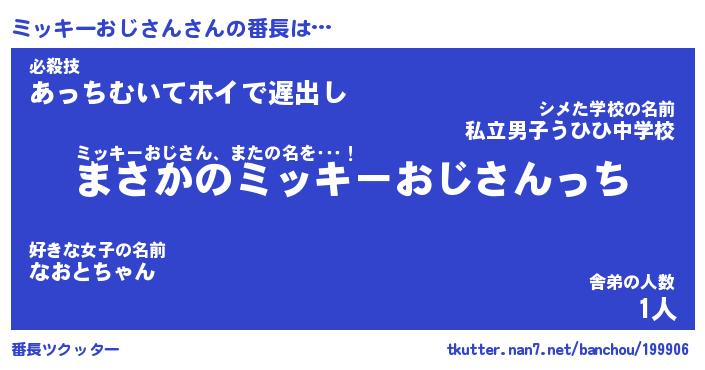 | 意味不明あだ名 | 『ペロリンミッキーおじさん』 |