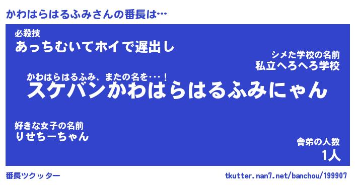 | 意味不明あだ名 | 『ペロリンかわはらはるふみ』 |