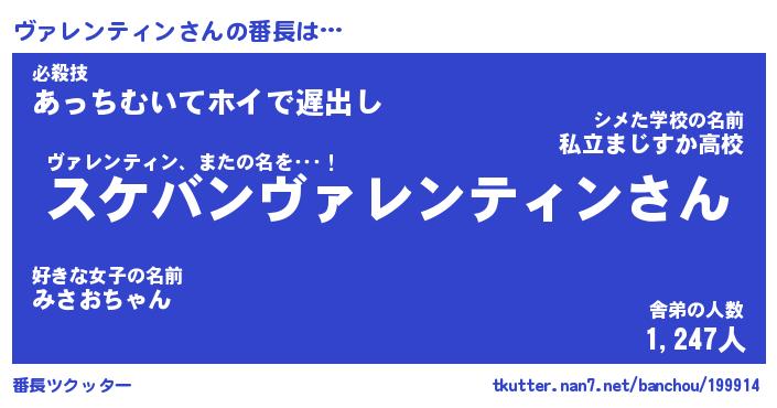 | ヒーロー風カッコイイあだ名 | 『スーパーヴァレンティン』 |