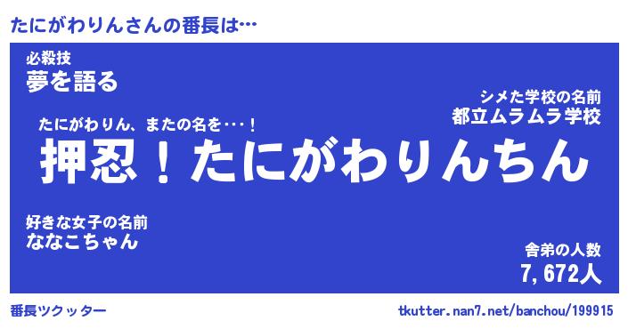 | 意味不明あだ名 | 『ペロリンたにがわりん』 |