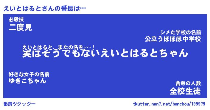 | 肩書あだ名 | 『えいとはると店長』『えいとはると担任』 |