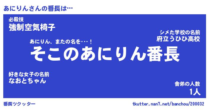 | 意味不明あだ名 | 『ペロリンあにりん』『永久保存あにりん』 |