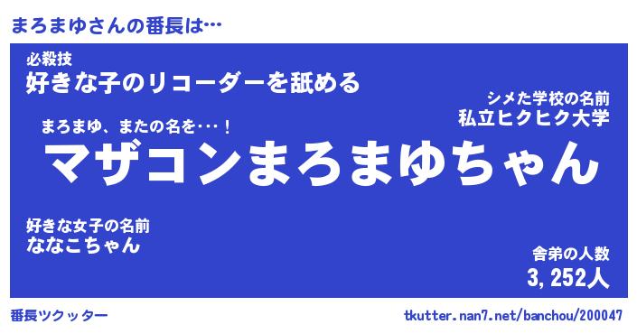 | 意味不明あだ名 | 『ペロリンまろまゆ』『永久保存まろまゆ』 |