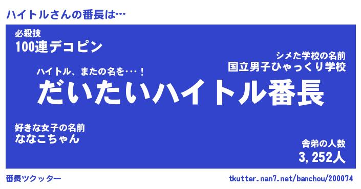 | 意味不明あだ名 | 『ペロリンハイトル』『永久保存ハイトル』 |