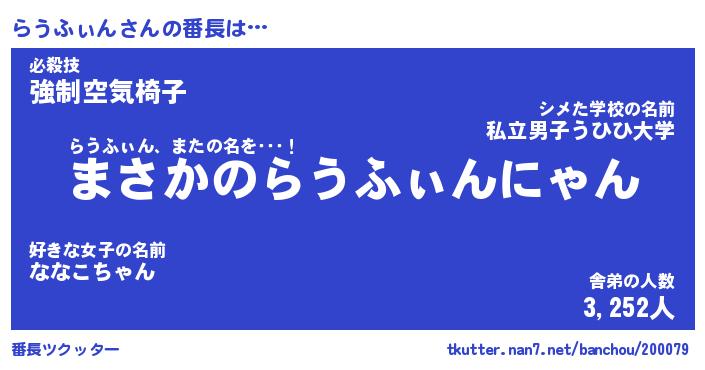 | 意味不明あだ名 | 『ペロリンらうふぃん』 |