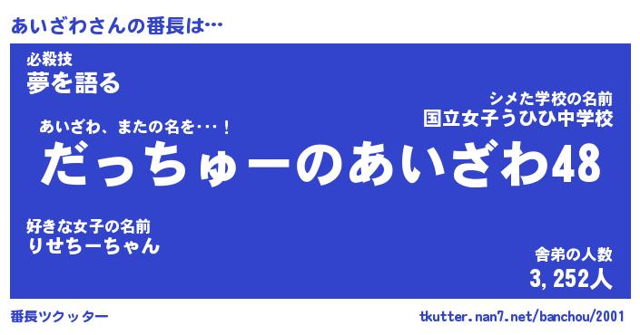 | 肩書あだ名 | 『あいざわ社長』『あいざわ国家主席』 |