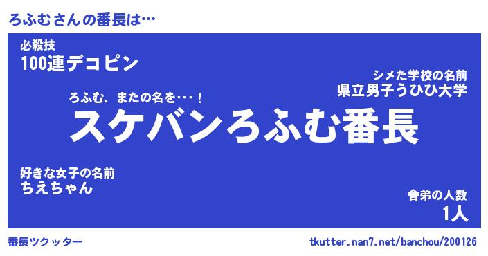 | 意味不明あだ名 | 『ペロリンろふむ』『ろふむフォーエバー』 |