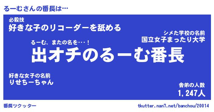 | ヘコむあだ名 | 『るーもー』『なまこ酢』『るー太郎』 |