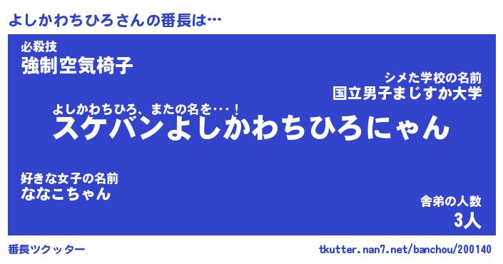 | 肩書あだ名 | 『よしかわちひろ店長』 |