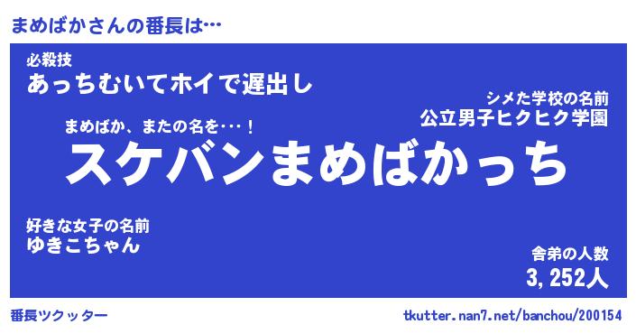 | ヒーロー風カッコイイあだ名 | 『スーパーマメバカ』『幻影騎士マメ』 |