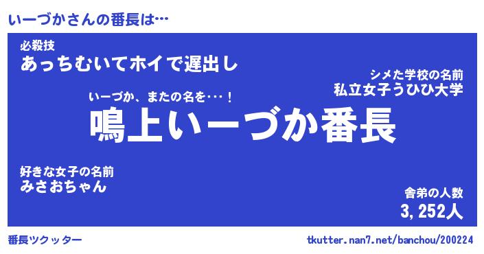 | 意味不明あだ名 | 『ペロリンいーづか』『永久保存いーづか』 |