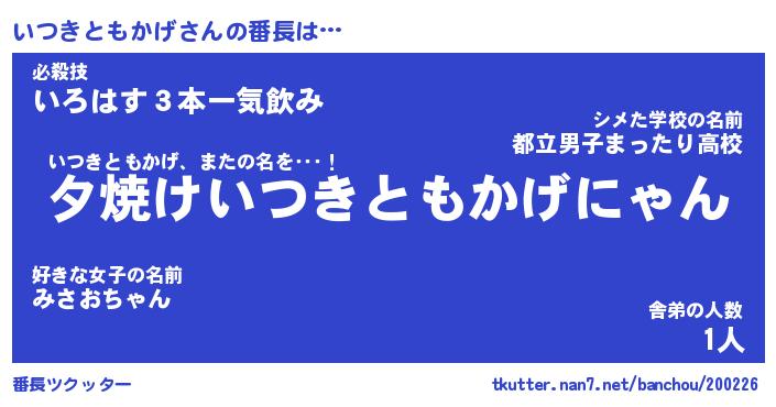 | 伝説のあだ名 | 『封印されしスナイパーいつきともかげ』 |