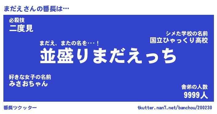| ヒーロー風カッコイイあだ名 | 『スーパーマダエ』『ウルトラまだえマン』 |
