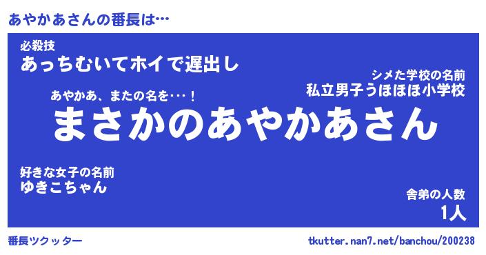 | 意味不明あだ名 | 『ペロリンあやかあ』『永久保存あやかあ』 |
