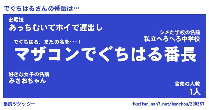 | ヘコむあだ名 | 『でぐもー』『つくし』『でぐっ子』 |