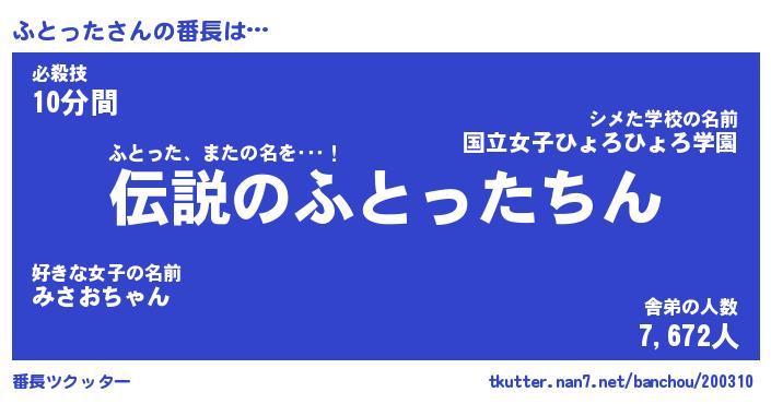 | ピコ太郎風あだ名 | 『フコ次郎』『ピフ十郎』『フト八郎』 |