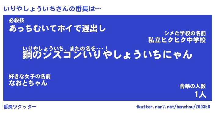 | ピコ太郎風あだ名 | 『イコ史郎』『ピイ八郎』『イリ一郎』 |