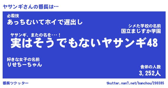 | ピコ太郎風あだ名 | 『ヤコ五郎』『ピヤ八郎』『ヤサ八郎』 |