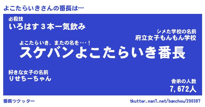 | 伝説のあだ名 | 『不死鳥のスナイパーよこたらいき』 |