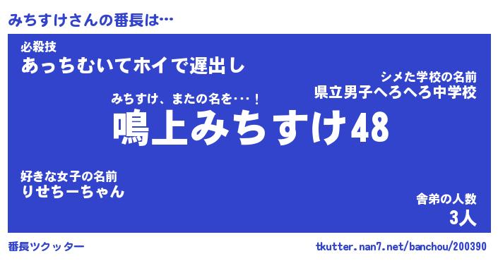 | 意味不明あだ名 | 『ペロリンみちすけ』『永久保存みちすけ』 |