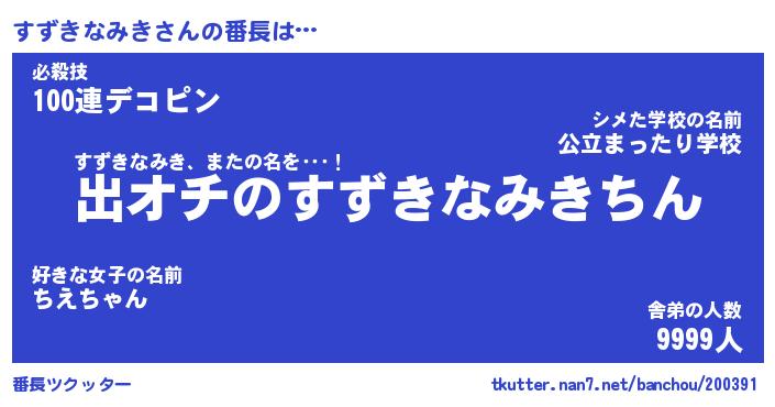 | ヒーロー風カッコイイあだ名 | 『スーパースズキナミキ』『銀牙騎士スズ』 |