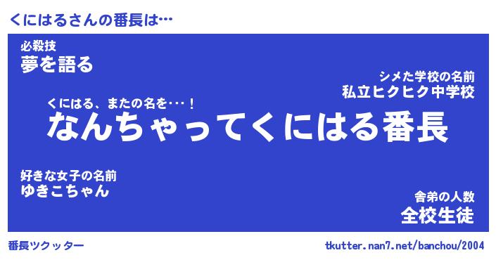 | 意味不明あだ名 | 『ペロリンくにはる』『永久保存くにはる』 |