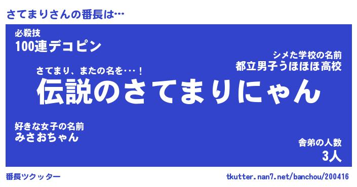| 伝説のあだ名 | 『伝説のスナイパーさてまり』 |