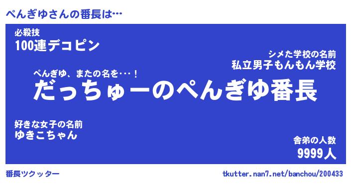 | 意味不明あだ名 | 『ペロリンぺんぎゆ』『永久保存ぺんぎゆ』 |