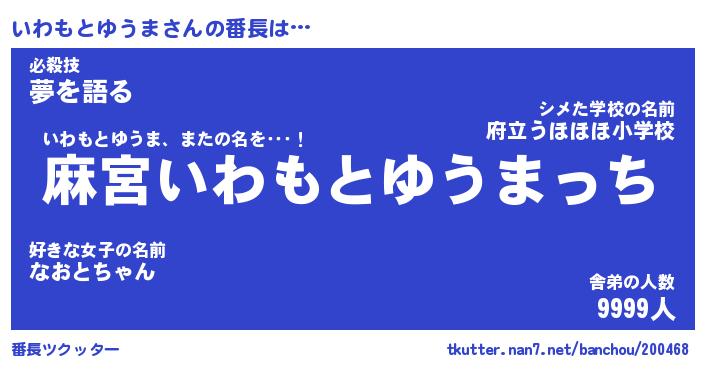 | 肩書あだ名 | 『いわもとゆうま御曹司』 |