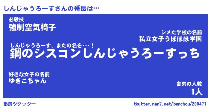 | 伝説のあだ名 | 『封印されしスナイパーしんじゃうろーす』 |