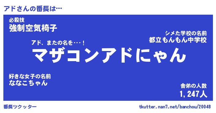 | 肩書あだ名 | 『アドCEO』『アド大統領』『アド班長』 |