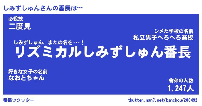 | 肩書あだ名 | 『しみずしゅん御曹司』 |
