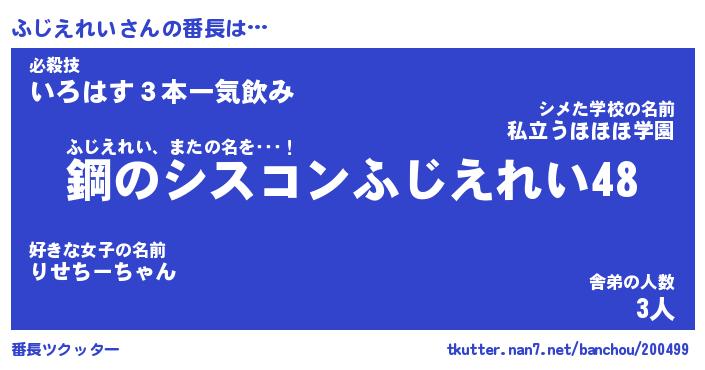 | 伝説のあだ名 | 『封印されしスナイパーふじえれい』 |