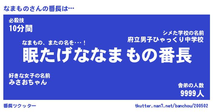 | 欧米人風あだ名 | 『マイケルなまもの』『ウサインなまもの』 |