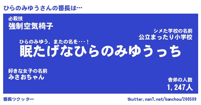 | 伝説のあだ名 | 『封印されしスナイパーひらのみゆう』 |