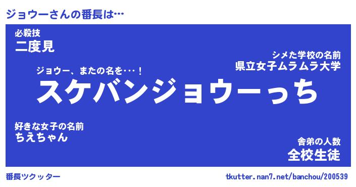 | ピコ太郎風あだ名 | 『ジコ六郎』『ピジ二郎』『ジョ四郎』 |