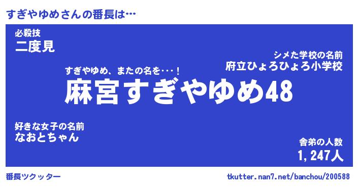 | 2回繰り返すあだ名 | 『すぎすぎ』『すすぎぎ』『なあなあ』 |