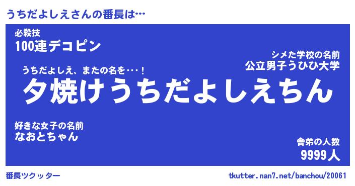 | ポケモン風あだ名 | 『ウチチュウ』『ウチダダネ』 |